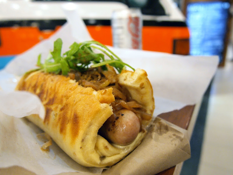 The Mystery-Machine-esque van was quite a surprise though - the booth is van-shaped and the cashier, hot dog grill and prep is all in the van. Nifty! Lotsa people claiming their $5 for $10 vouchers, but I guess the real reason there were crowds was the sloowwwwww service for hot dogs.